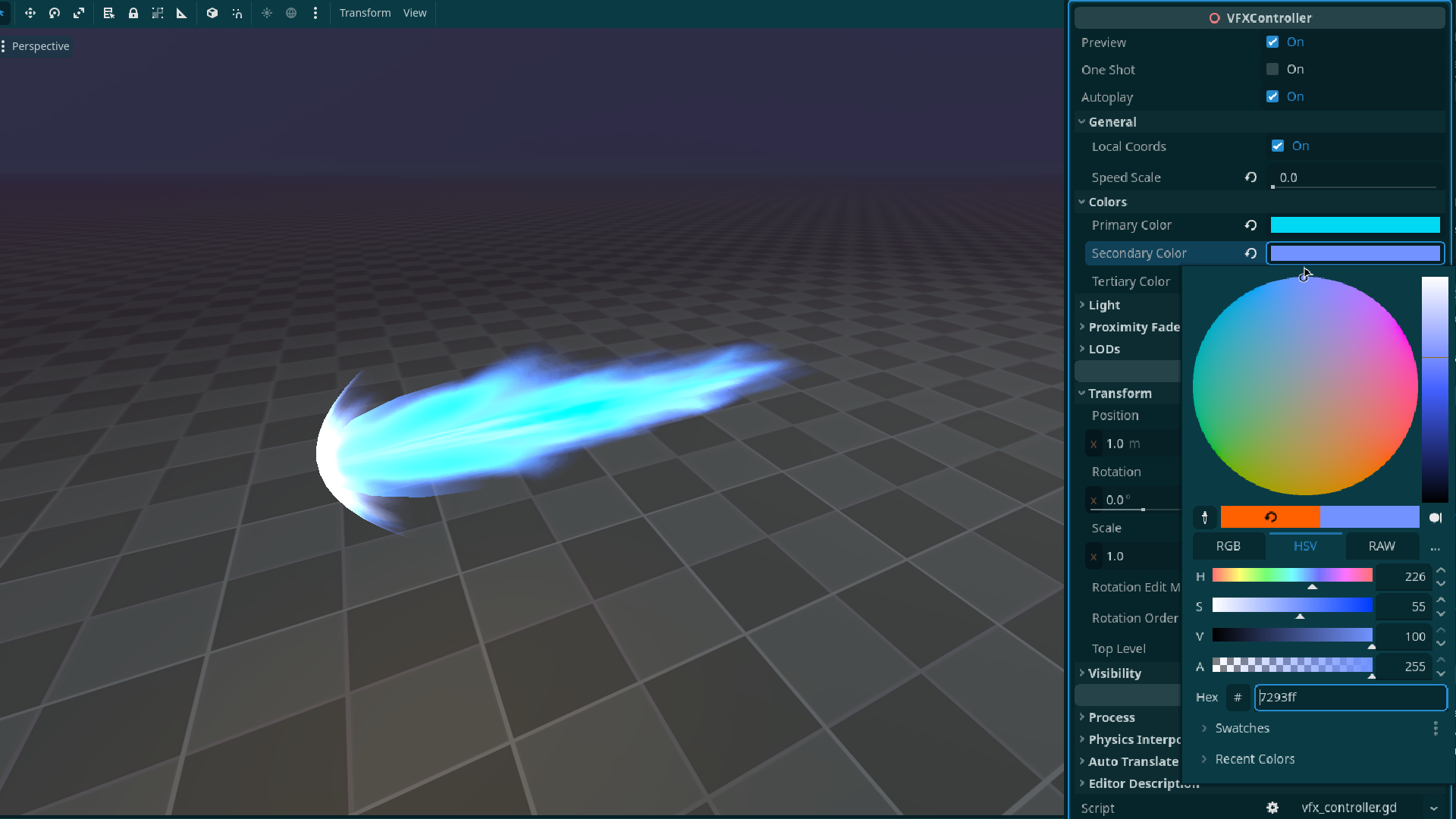All effects come with a tool script that allows you to easily customize the effects to your liking directly in the editor.